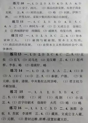 七年級下冊快樂過暑假歷史 練習9—練習16