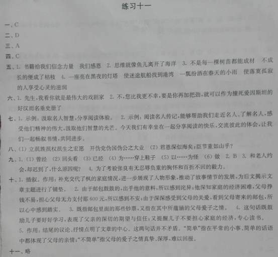 七年級暑假學(xué)習(xí)生活語文答案 練習(xí)11