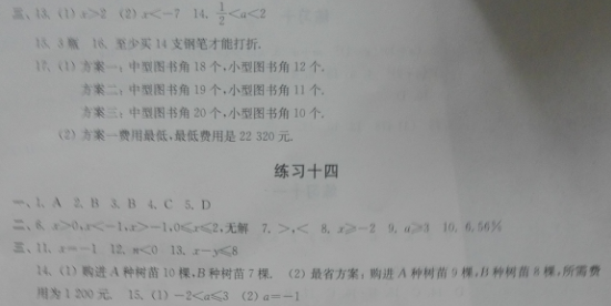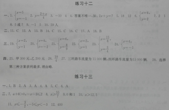 七年級(jí)暑假學(xué)習(xí)生活數(shù)學(xué)答案 練習(xí)12—練習(xí)14