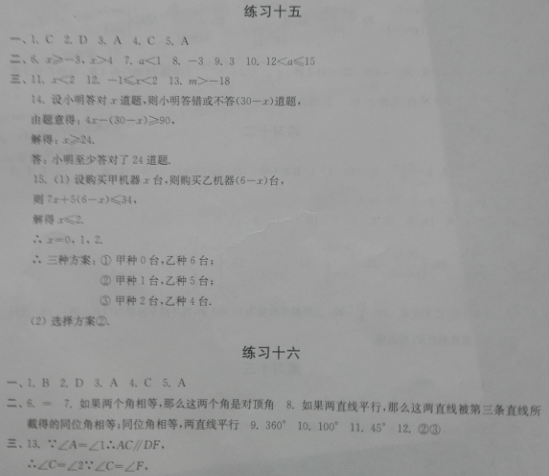 七年級(jí)暑假學(xué)習(xí)生活數(shù)學(xué)答案 練習(xí)15—練習(xí)16