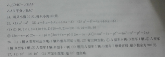 七年級暑假學(xué)習(xí)生活數(shù)學(xué)答案 練習(xí)17—練習(xí)18