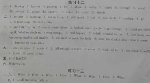 七年級(jí)暑假學(xué)習(xí)生活數(shù)學(xué)答案 練習(xí)12—練習(xí)13