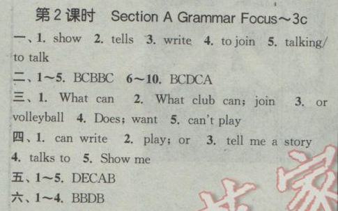 [七下] 人教版七年級下冊英語課時作業(yè)本Unit 1 第2課時Section A答案