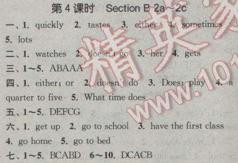 [七下] 人教版七年級下冊英語課時作業(yè)本Unit 2 第4課時SectionB答案