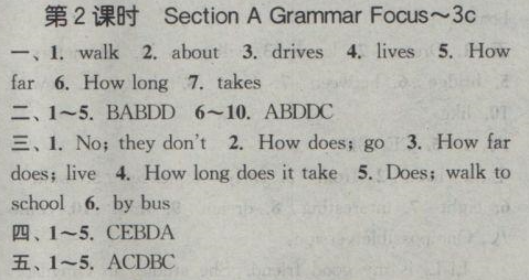 [七下] 人教版七年級(jí)下冊(cè)英語課時(shí)作業(yè)本Unit 3第2課時(shí)Section A答案