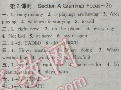 [七下] 人教版七年級(jí)下冊(cè)英語課時(shí)作業(yè)本Unit 7 第2課時(shí)SectionA答案