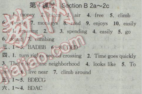[七下] 人教版七年級(jí)下冊(cè)英語(yǔ)課時(shí)作業(yè)本Unit 8 第4課時(shí)SectionB答案