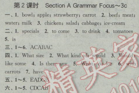 [七下] 人教版七年級(jí)下冊(cè)英語(yǔ)課時(shí)作業(yè)本Unit 10 第2課時(shí)SectionA答案