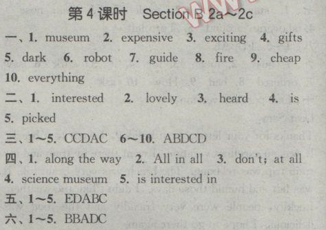 [七下] 人教版七年級下冊英語課時作業(yè)本Unit 11 第4課時SectionB答案