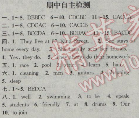 [七下] 人教版七年級下冊英語課時作業(yè)本期中測試