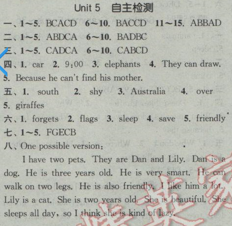 [七下] 人教版七年級(jí)下冊(cè)英語(yǔ)課時(shí)作業(yè)本Unit 5單元自測(cè)卷答案