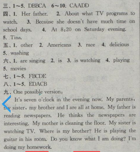 [七下] 人教版七年級下冊英語課時作業(yè)本Unit 6單元自測卷答案