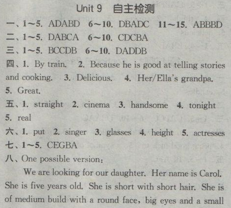 [七下] 人教版七年級下冊英語課時作業(yè)本Unit9單元自測卷答案