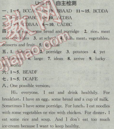 [七下] 人教版七年級(jí)下冊(cè)英語(yǔ)課時(shí)作業(yè)本Unit 10單元自測(cè)卷答案