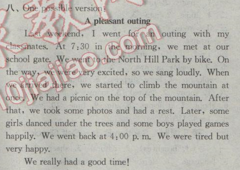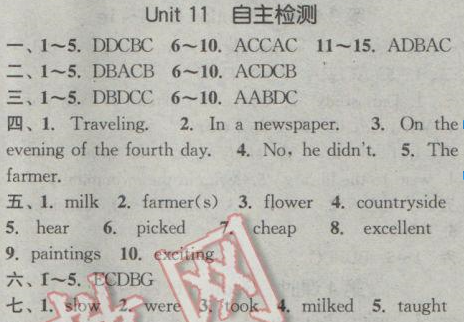 [七下] 人教版七年級(jí)下冊(cè)英語課時(shí)作業(yè)本Unit11單元自測(cè)卷答案