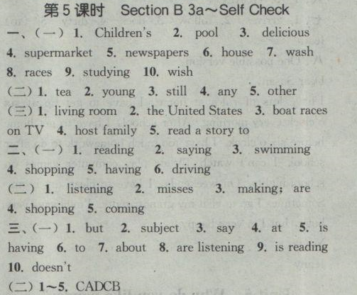 [七下] 人教版七年級(jí)下冊(cè)英語(yǔ)課時(shí)作業(yè)本Unit 6第5課時(shí)答案