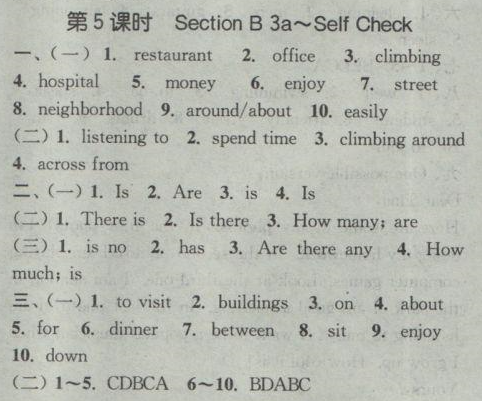 [七下] 人教版七年級(jí)下冊(cè)英語(yǔ)課時(shí)作業(yè)本Unit 8第5課時(shí)SectionB答案