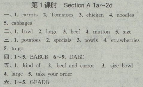 [七下] 人教版七年級下冊英語課時作業(yè)本Unit 10 第1課時SectionA答案