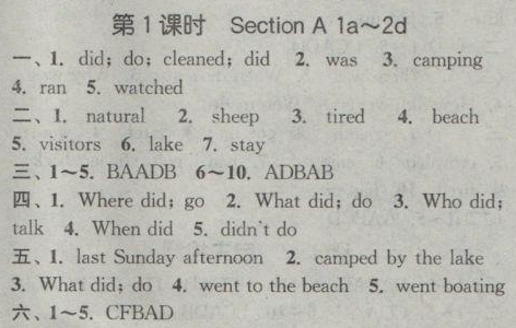 [七下] 人教版七年級下冊英語課時作業(yè)本Unit12 第1課時SectionA答案