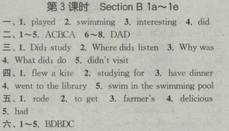 [七下] 人教版七年級下冊英語課時作業(yè)本Unit 12第3課時SectionB答案