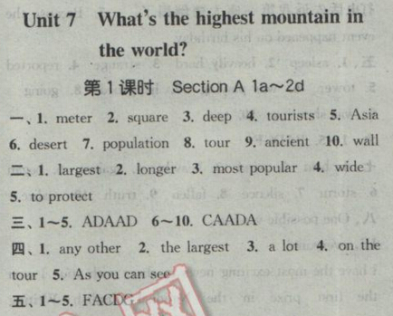2017年通城學(xué)典課時(shí)作業(yè)本八年級英語下冊人教版 Unit7 第1課時(shí)