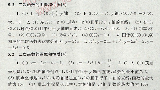 蘇科版補(bǔ)充習(xí)題九年級(jí)數(shù)學(xué)下冊第五章二次函數(shù)
