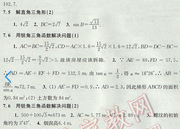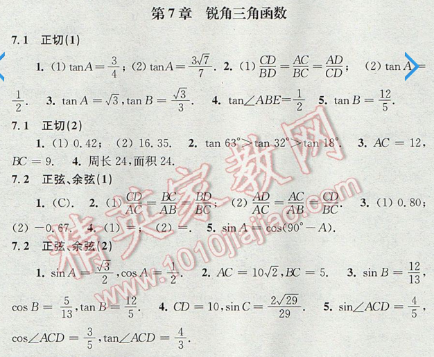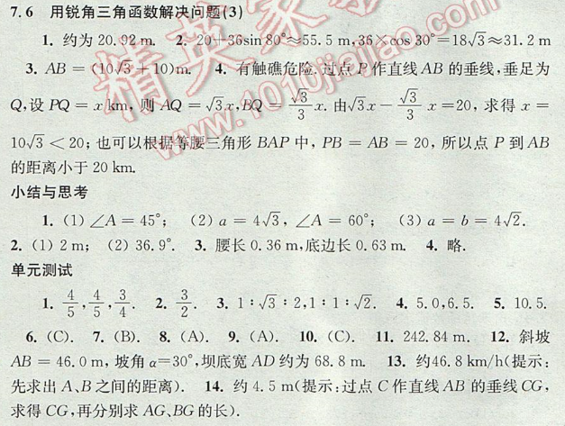 蘇科版補(bǔ)充習(xí)題九年級數(shù)學(xué)下冊第7章銳角三角函數(shù)
