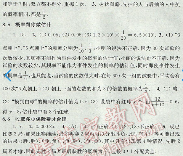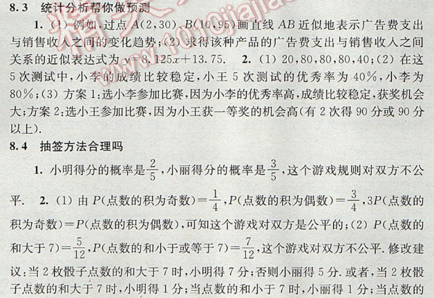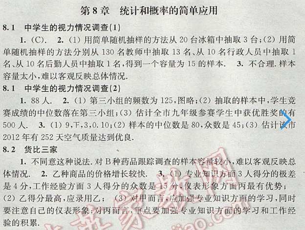蘇科版補充習題九年級數(shù)學下冊第8章統(tǒng)計與概率的簡單應用