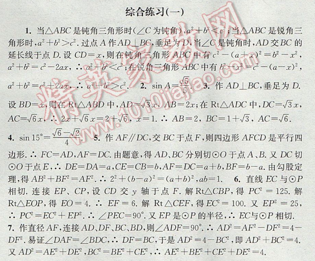 蘇科版補(bǔ)充習(xí)題九年級(jí)數(shù)學(xué)下冊(cè)綜合練習(xí)(一)
