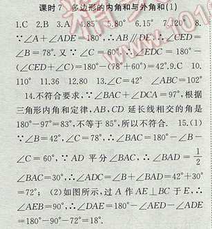2017年高效精煉七年級(jí)下冊(cè)數(shù)學(xué)【蘇科版】第7章 課時(shí)7 多邊形的內(nèi)角和與外角和(1)