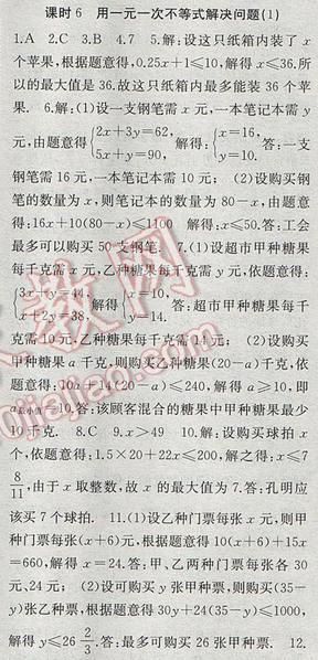 2017年高效精煉七年級(jí)下冊(cè)數(shù)學(xué)【蘇科版】第11章 課時(shí)6 用一元一次不等式解決問題...