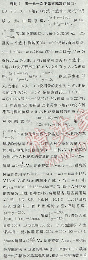 2017年高效精煉七年級下冊數(shù)學(xué)【蘇科版】第11章 課時7 用一元一次不等式解決問題...