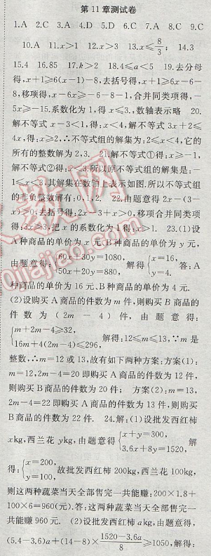2017年高效精煉七年級下冊數(shù)學(xué)【蘇科版】第11章測試卷