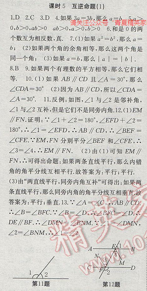 2017年高效精煉七年級下冊數(shù)學(xué)【蘇科版】第12章 課時5 互逆命題(1)
