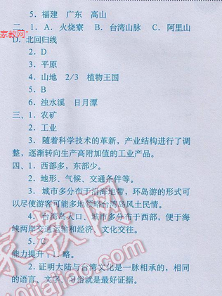 2017年中圖版七年級(jí)地理下冊(cè)填充圖冊(cè)答案 第七章認(rèn)識(shí)我國的區(qū)域 第二節(jié)