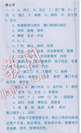 2017年中圖版七年級(jí)地理下冊(cè)填充圖冊(cè)答案 第七章認(rèn)識(shí)我國(guó)的區(qū)域 第七節(jié)