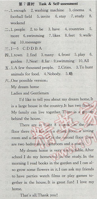 2017年高效精煉七年級下冊英語【譯林牛津版】Unit 1 Dream homes 第7課時