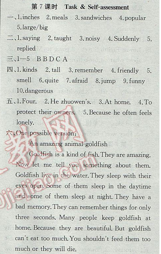 2017年高效精煉七年級下冊英語【譯林牛津版】Unit 5 Amazing things 第7課時