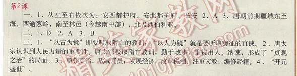 2017年人教版中國歷史填充圖冊答案七年級下冊 第2課