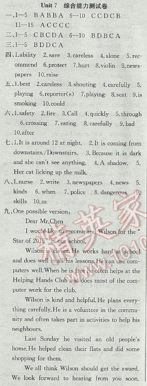 2017年高效精煉七年級下冊英語【譯林牛津版】Unit 7 綜合能力測試卷