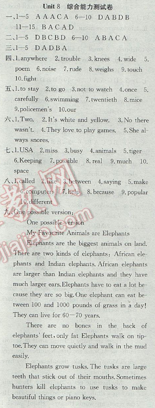 2017年高效精煉七年級(jí)下冊(cè)英語【譯林牛津版】Unit 8 綜合能力測(cè)試卷