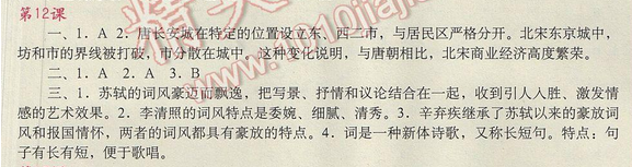 2017年人教版中國歷史填充圖冊(cè)答案七年級(jí)下冊(cè) 第12課