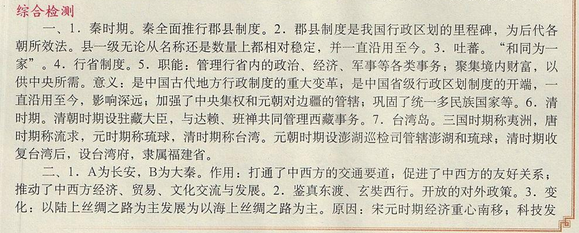 2017年人教版中國歷史填充圖冊答案七年級下冊 綜合檢測