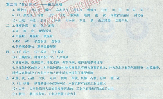 2017星球地圖出版社八年級下冊地理填充圖冊 第六章北方地區(qū)第二節(jié)白山黑水-東北三省