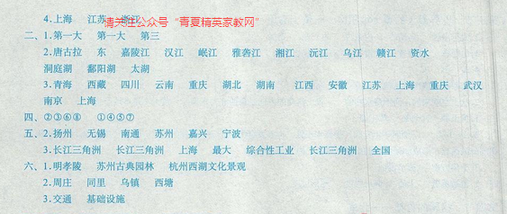 2017星球地圖出版社八年級下冊地理填充圖冊 第七章南方地區(qū)第二節(jié)魚米之鄉(xiāng)-長江三...