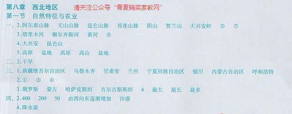 2017星球地圖出版社八年級下冊地理填充圖冊第八章西北地區(qū)第一節(jié)自然特征與農(nóng)業(yè)
