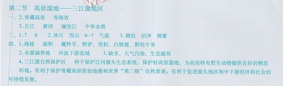 2017星球地圖出版社八年級下冊地理填充圖冊 九章青藏地區(qū)第二節(jié)高原濕地-三江源地區(qū)
