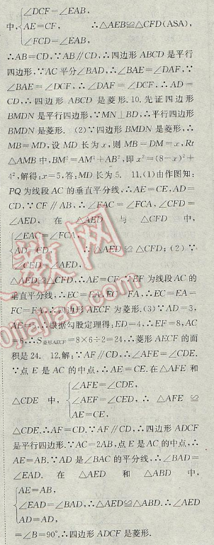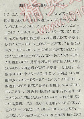 2017年高效精煉八年級下冊數(shù)學(xué)【江蘇版】第9章 課時(shí)9 矩形、菱形、正方形(4)
