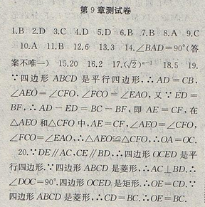 2017年高效精煉八年級(jí)下冊(cè)數(shù)學(xué)【江蘇版】第9章測(cè)試卷