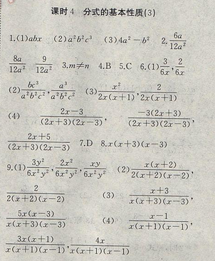 2017年高效精煉八年級(jí)下冊(cè)數(shù)學(xué)【江蘇版】第10章 課時(shí)4 分式的基本性質(zhì)(3)